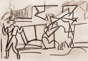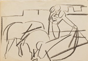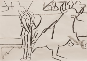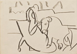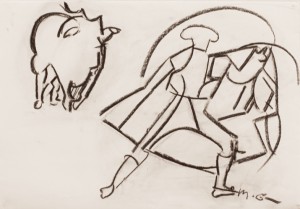 bullfighting/ charcoal & pastel on paper _